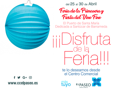 Desde el Centro Comercial EL PASEO os invitamos a los foráneos a acercaros y pasar momentos únicos en la Feria de nuestra ciudad, El Puerto de Santa María. Y a los paisanos les deseamos que disfruten de su feria, ¡nuestra feria!